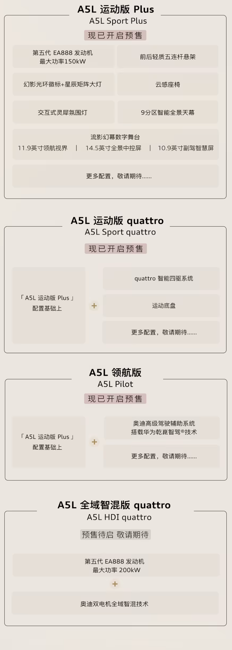 A5L 敞开版 Plus 先享礼遇价 256800 元